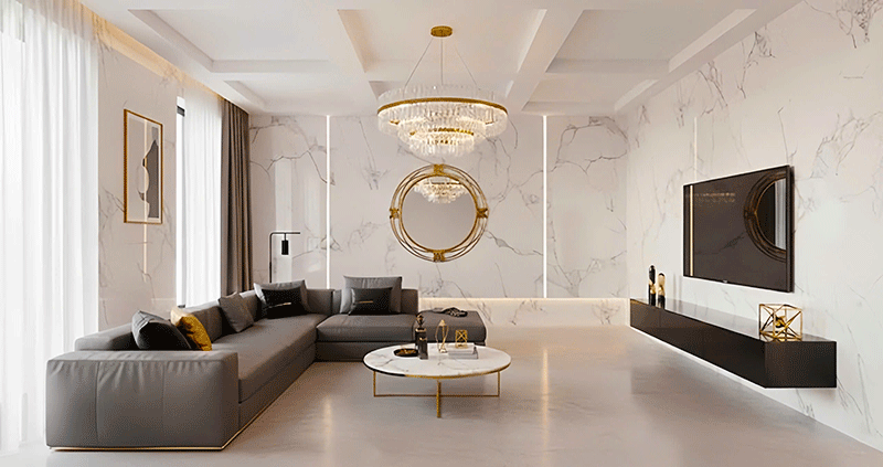 Ý tưởng thiết kế phòng khách Urban với đá marble sang trọng