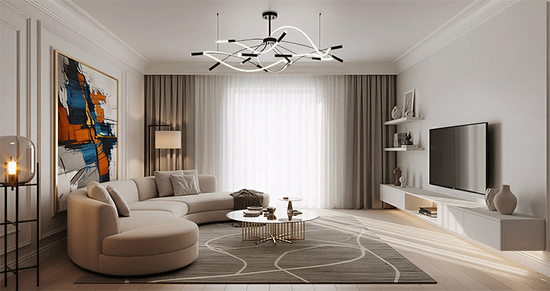 Trong phong cách Expressionism, ánh sáng là “nghệ sĩ thầm lặng” – người dệt nên cảm xúc và nhịp điệu cho không gian. Mỗi tia sáng, bóng đổ hòa quyện như giai điệu thị giác, khiến phòng khách trở nên sống động và đầy cảm xúc.